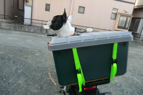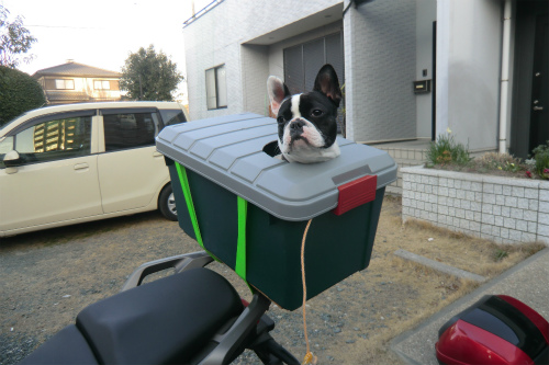 市販のキャリーは、風を通すため今の季節は不向きなので、コンテナを利用したのだが。