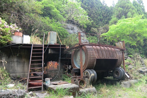 R152へバイクを進めると、巨大なドラム缶のようなものが放置されている。