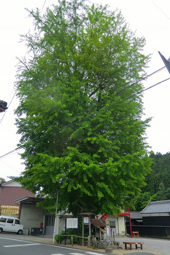 目的地に着く前に大いちょうの木が。電話線が通っているが、倒木の心配をするのはボクだけであろうか。