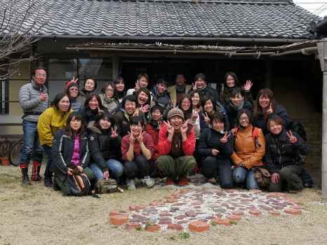 ランチが終わった後、庭先で記念写真。前列中央の二人が店のオーナー。