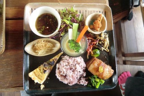 昼食は「畑カフェ レインボーアート」、古民家を改装した店。
