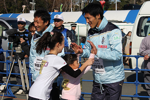 どのマラソン大会も市民の方が沿道に出て応援してくれるが、ジュビロ磐田メモリアルマラソンの応援は群を抜いている。