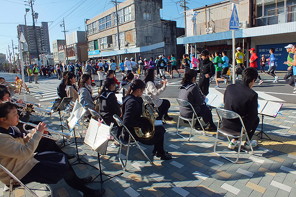各所で高校のブラスバンド部の演奏があり、その他にも消防団や市内の音楽グループの演奏もあった。