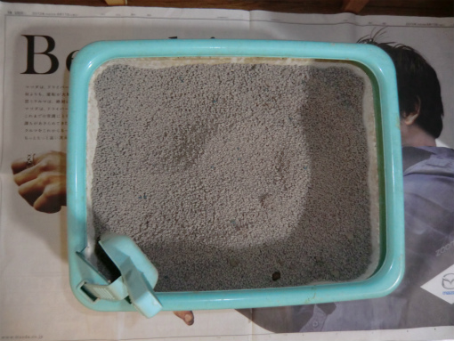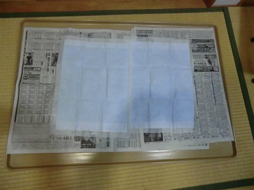 トイレといってもトレーの上に新聞紙と紙おむつが敷いてあるだけ。