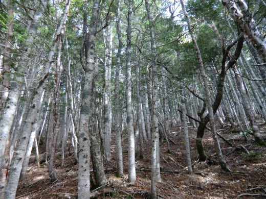樹林帯の中を歩くが、植生が次々に変わり、変化を楽しむことができる。