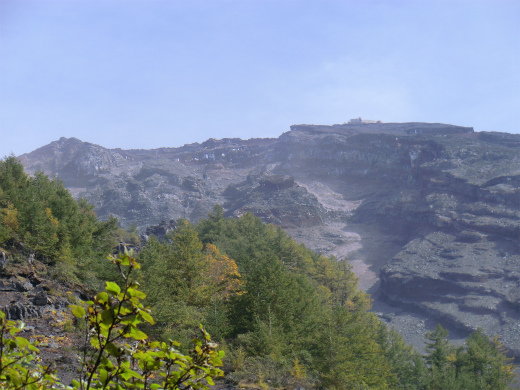 右が富士山の剣ヶ峰、元測候所の丸いドームを見ることができる。