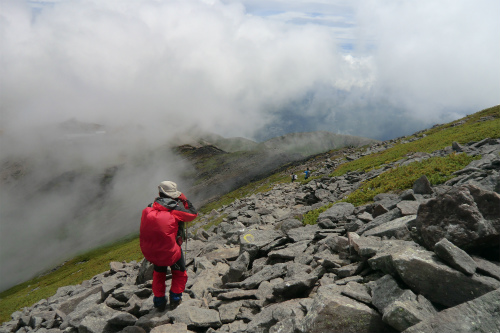 濃いガスの中、しかも風が次第に強くなり、メガネは拭いても、水の中に落としたようにすぐ濡れてしまう。