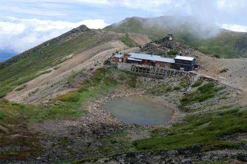 五の池小屋が眼下に飛び込んできた(手前が五の池)