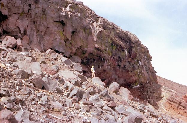 中央に人が立っているので崖の大きさが比較できる。