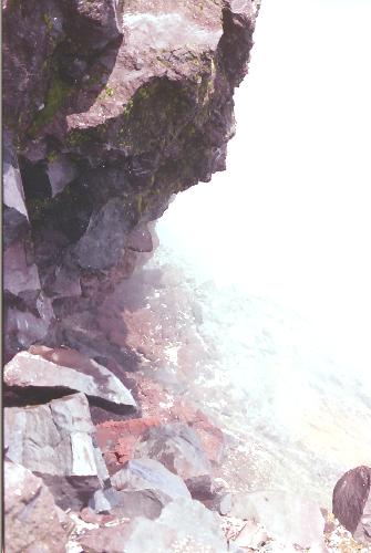 現在でも久須志岳は垂直の崖で、その下はえぐれていて、いつ落石が起きるかわからないような状態。