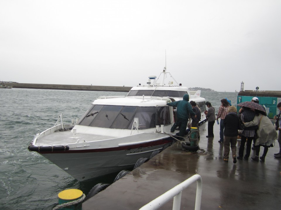 小一時間バスに揺られ、日間賀島に渡る遊覧船に到着した頃には土砂降り(泣)。