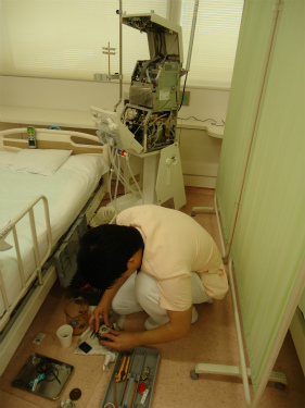 本日より、透析監視装置の部品を交換し、部品交換を終えたら装置のチェックと調整を行てもらう。