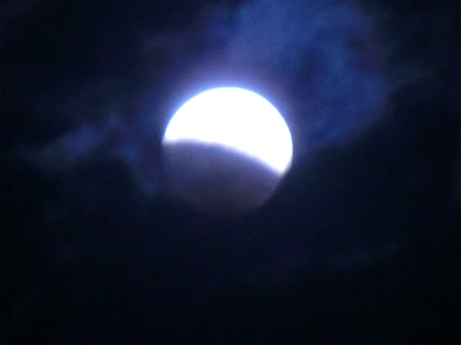 半分ほど欠けた月に、地球の影がはっきりとわかる。