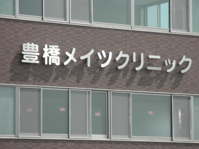 「豊橋メイツクリニック」が日に照らされて輝いています。