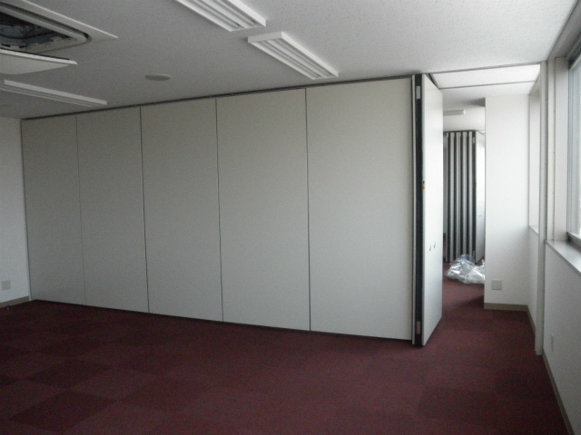 3つの部屋が並ぶ会議室で、衝立で仕切られ、必要に応じて部屋の広さを調節します。