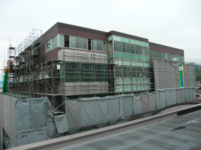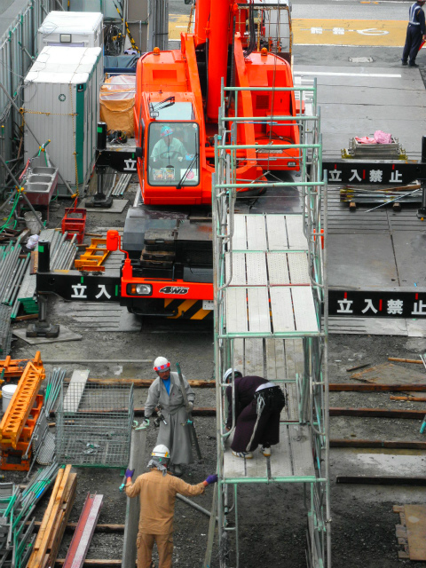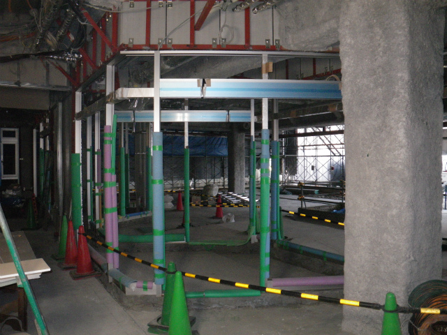 ここから屋上に上がりましたが、四方をシートで覆われているので写真はありません。