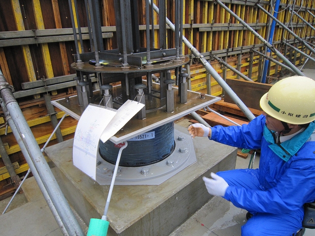 こちらは積層ゴムで出来ていて、建物を安定してゆっくりとした動きをさせる「アイソレータ」というものです。