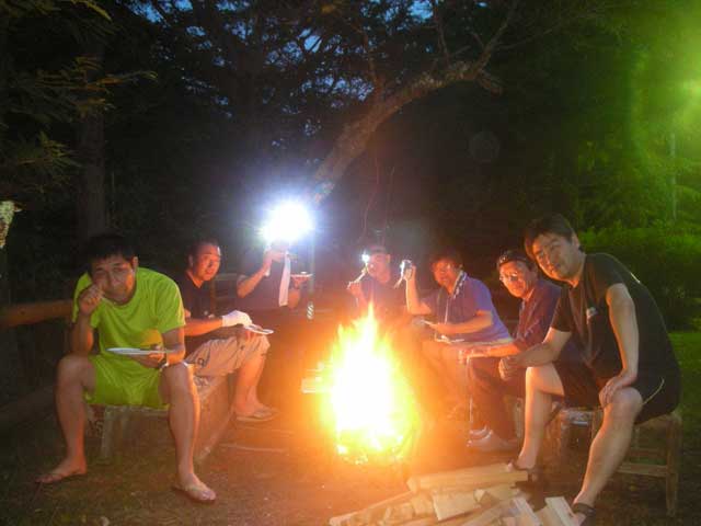 雨がやみ暗くなり始めた頃、外に出てバーベキュー。