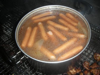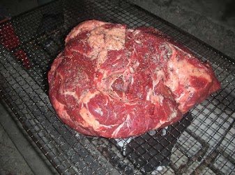 仲間が前日養老で購入してきた、肩ロース3.5kgと生ソーセージ1kgを炭火で焼く。