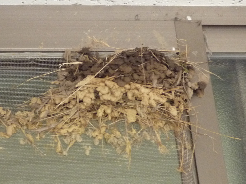 巣が落ちないか心配ですが、親ツバメは健気に建設しています。