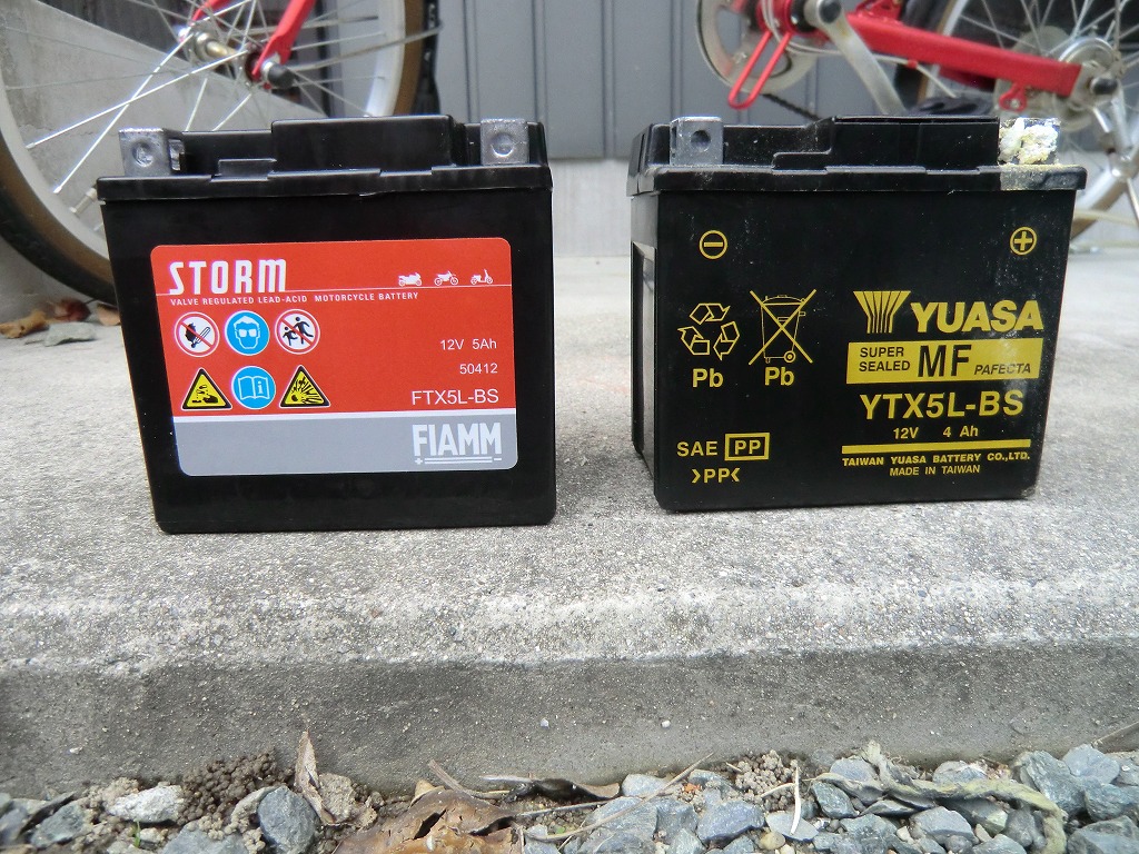 右がバイクについていたバッテリィ。