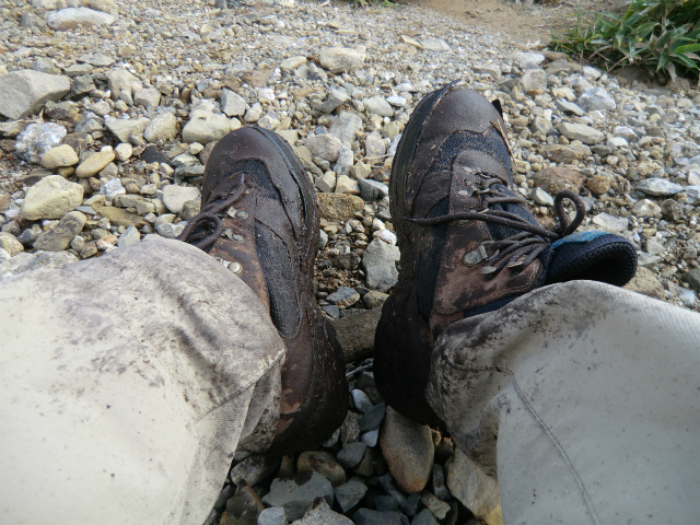 普通尾根道は乾いているが、北ノ俣岳避難小屋までの3時間はドロドロのグチャグチャのぬかるんだ道。長靴がベストアイテムだ。