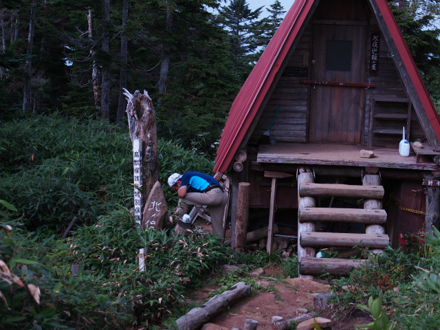 避難小屋の水場で念のため水を補給するが、水はちょろちょろしか出ていない。