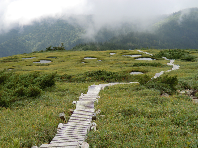 ここでぬかるんだ道と分かれ、整備された木道が続く。