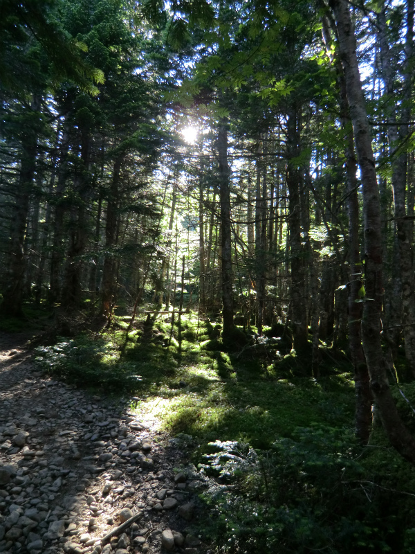 木漏れ日が射す森の中の歩行はとても気持ちの良いものです。
