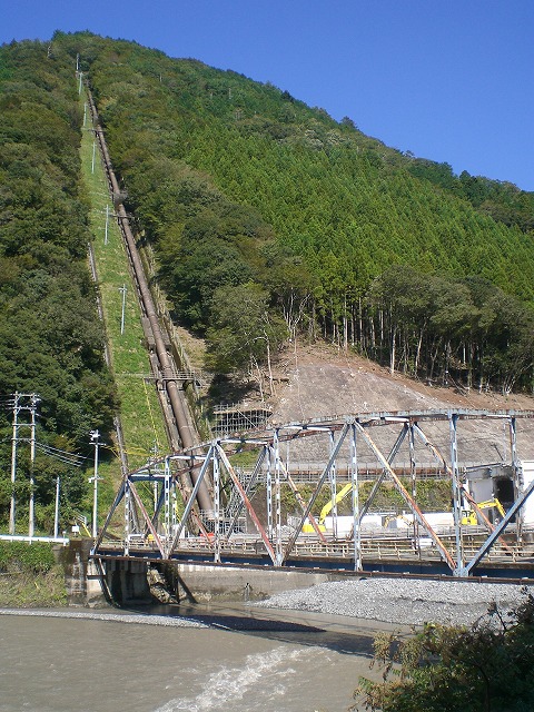 上流の豊岡堰堤で取水した水を、212mの落差を利用して発電している。