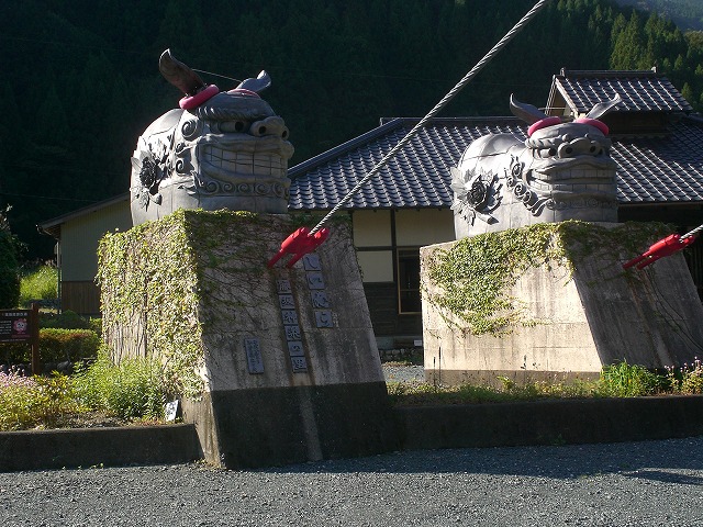 神楽の伝承館があり、吊り橋のワイヤは神楽の面だ。