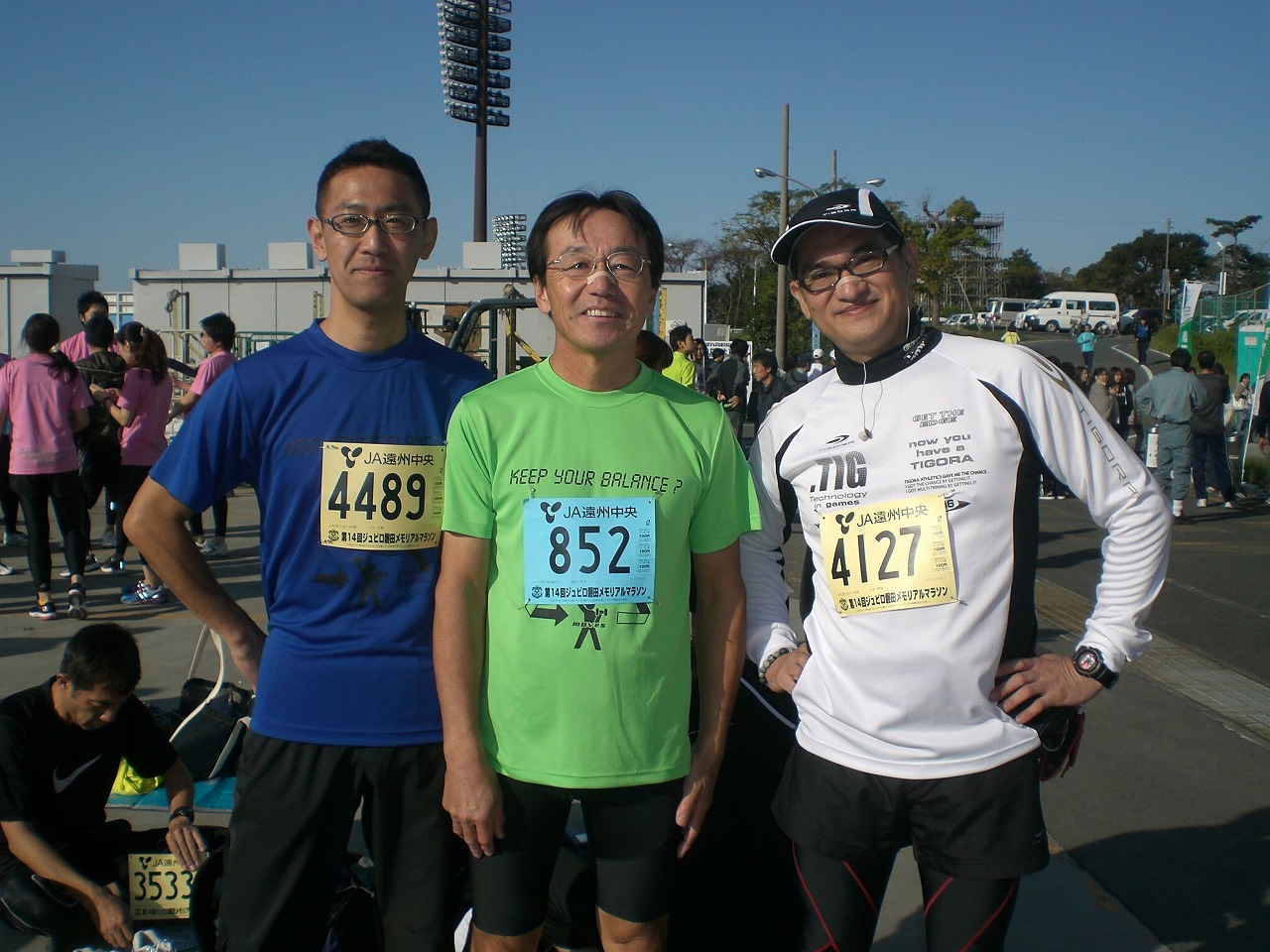 新島先生が見つからなかったので、3人だけのスタート前の記念写真。