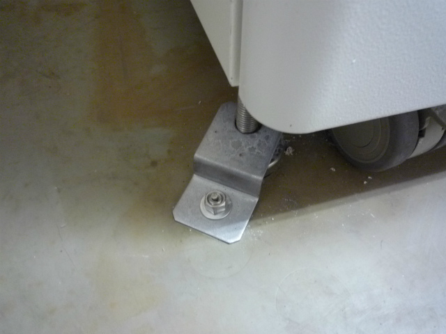 多人数用透析液供給装置は、アンカーボルトで床に固定しています(左図)