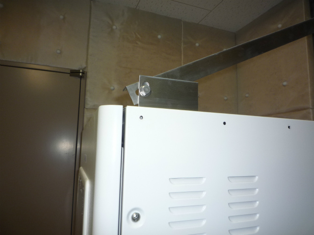 さらに装置の上部は、L字のアングルで建物の鉄骨に固定しています(右図)