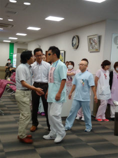 非常事態を知らせる院内放送を入れて、応援を呼び、