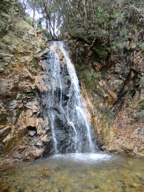 谷ルートを大きく巻いて下ると滝に出くわした。