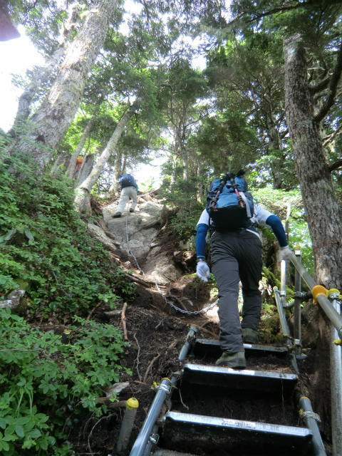 小地獄、大地獄、恐ろしい名前が付けられている難所がありますが、昨年登山道が崩壊し、新しいルートに代わっていました。鎖も真新しいものが付いています。