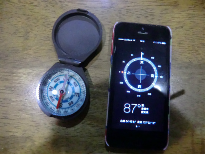 その時カミさんが「方位磁石あるでしょう」と言うので、山歩きするとき携行する方位計を渡した。