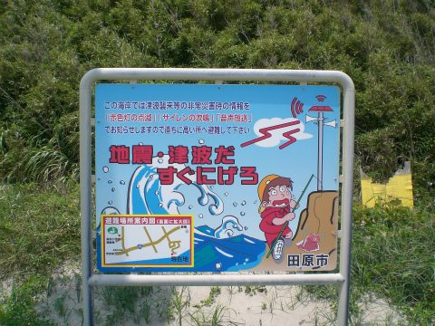 ボクは太平洋岸にシロギスの投げ釣りに行ったときは、すぐに避難できるように車の向きを逃げ道の方向に向けておく。