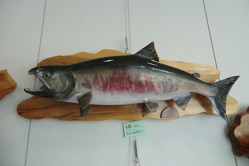 釣友が釣り上げた89cmの白鮭。デカイ!背がせり出し、下顎が曲がりだしているのでオスの鮭。