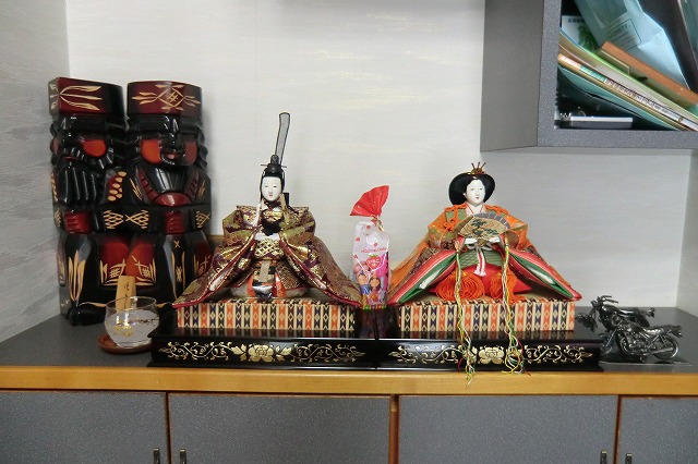3人の娘は社会人になったので、ひな壇への飾りつけはやめてお内裏様とお雛様だけになった。