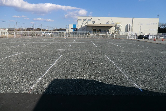 舗装されていない空き地には白線が引かれ、臨時駐車場になっている。
