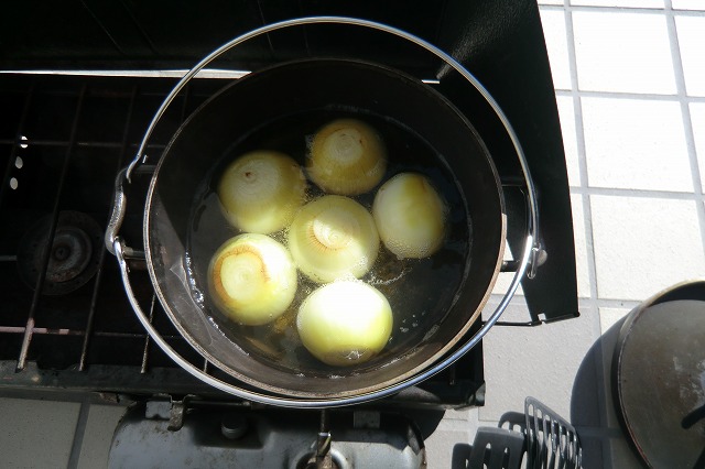 カミさんが何か一品作ってと言われたので、丸ごと玉ねぎの煮込みスープを作った。