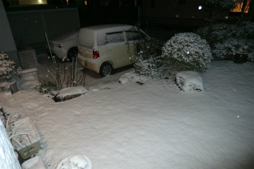 今日は日本中が雪だろうか、昨夜10時の時点で我が家の庭はこの状態。