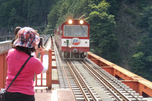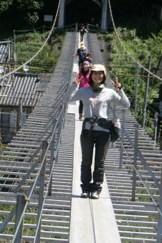 第2東名新金谷ICを下りて、塩郷の吊り橋へ。でも渡ったのは2人のレディだけ。
