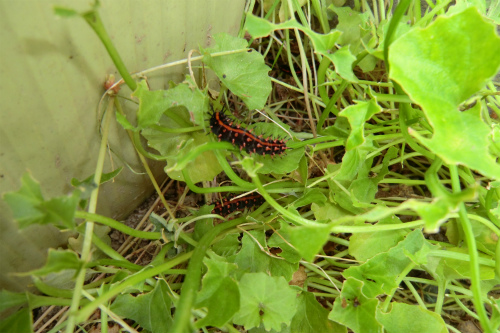 幼虫がそんないいるものだから、無残にもパンダスミレの葉は食いつくされている。