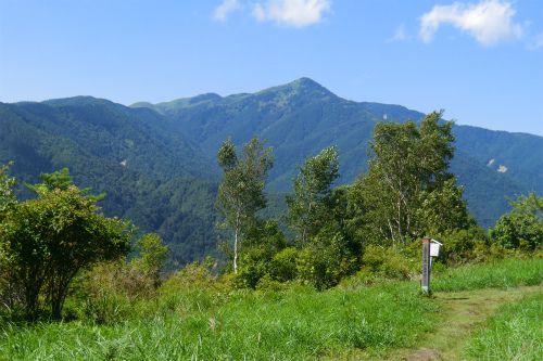 正面には何度か登った標高1,907mの大川入山。