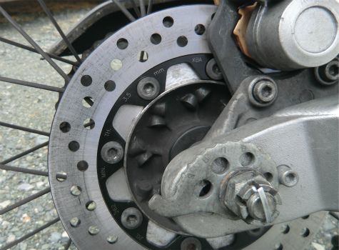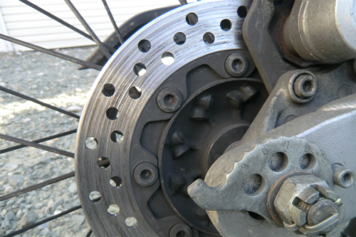 先日オフロードバイクのオイルの交換にレッドバロンに行ったら、リアのブレーキパッドは摩耗して全くなく、ディスクに傷がついているので交換しなければならないと言われた。