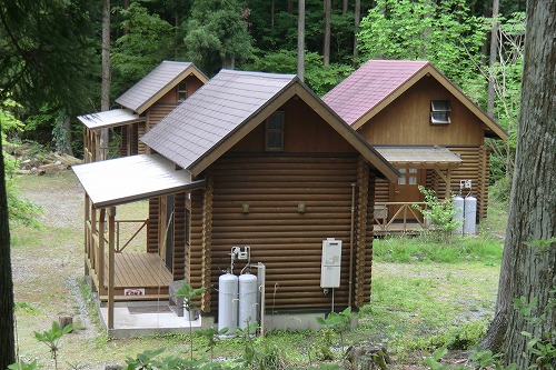 キャビン付きサイトとテントサイトを借り、テント二張りを張る。