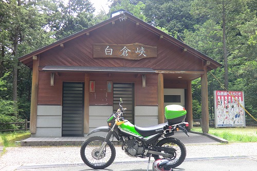 「白倉峡」のりっぱな看板が掲げられたトイレにバイクを止め、その脇にある階段を降りると